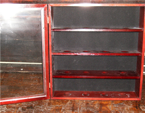 This is a wall mount baseball display case. It has a glass door and holds 20 baseballs. It is a great piece to display your collection.
